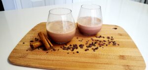 In a blender, add roasted cacao, soaked rice, water and cinnamon. Blend for 3 minutes until smooth.