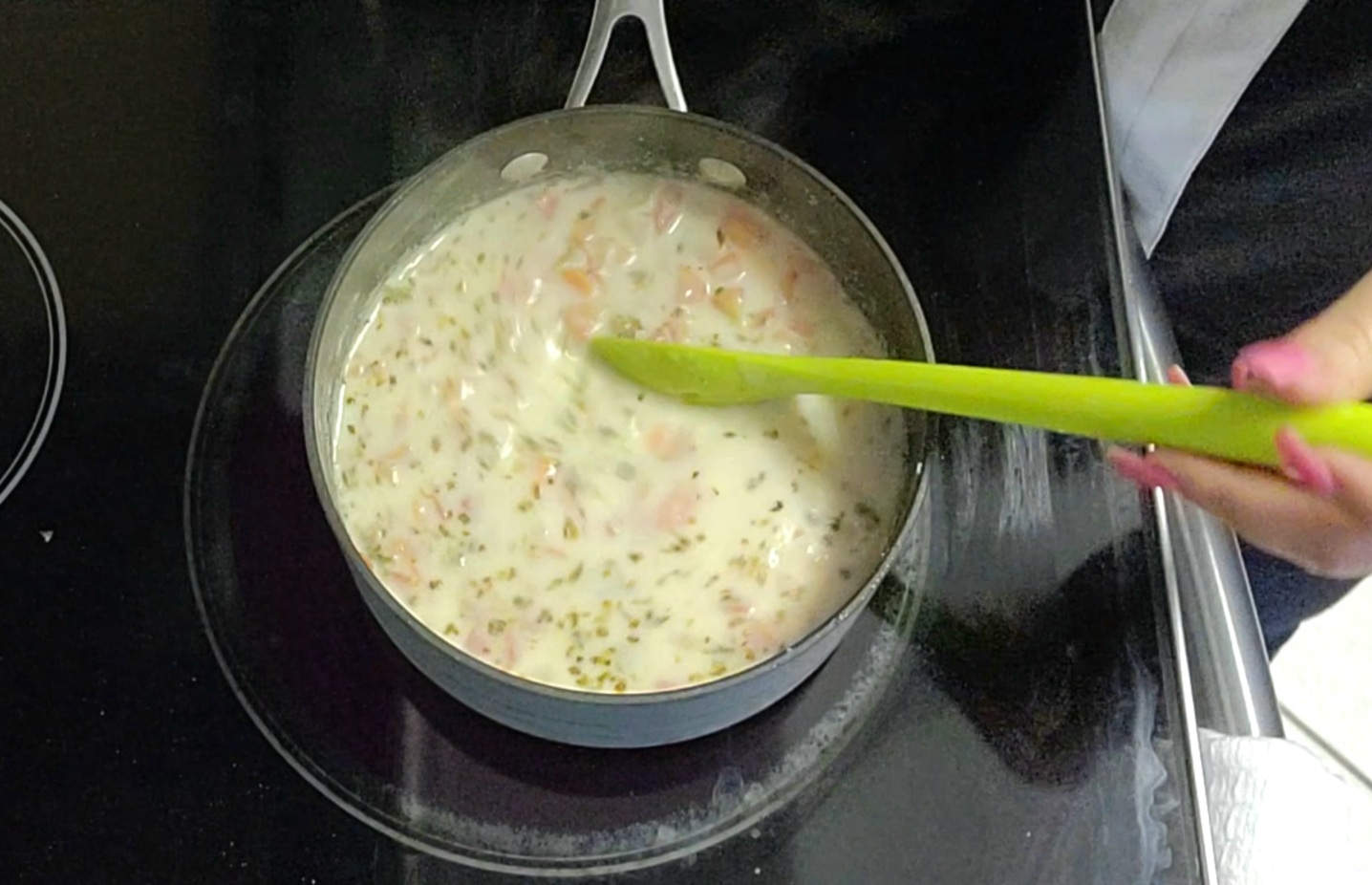 • Add whole milk and fish filets. Stir and allow soup to reduce for 5 minutes. The milk should slightly thicken with the broth. During this time, the fish will cook until white and flakey.